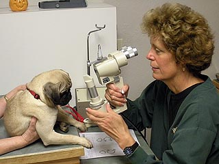 Pugsley was examined by his eye surgeon, Dr. Cook, of Veterinary Vision, Inc., on October 20, 2009. His retinas are healthy and he is scheduled for surgery on October 27. Dr. Cook will be doing both the cataract removal and the cherry eye surgery. Check back for further updates |